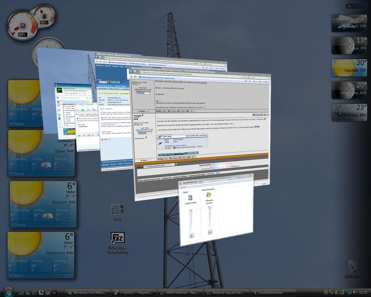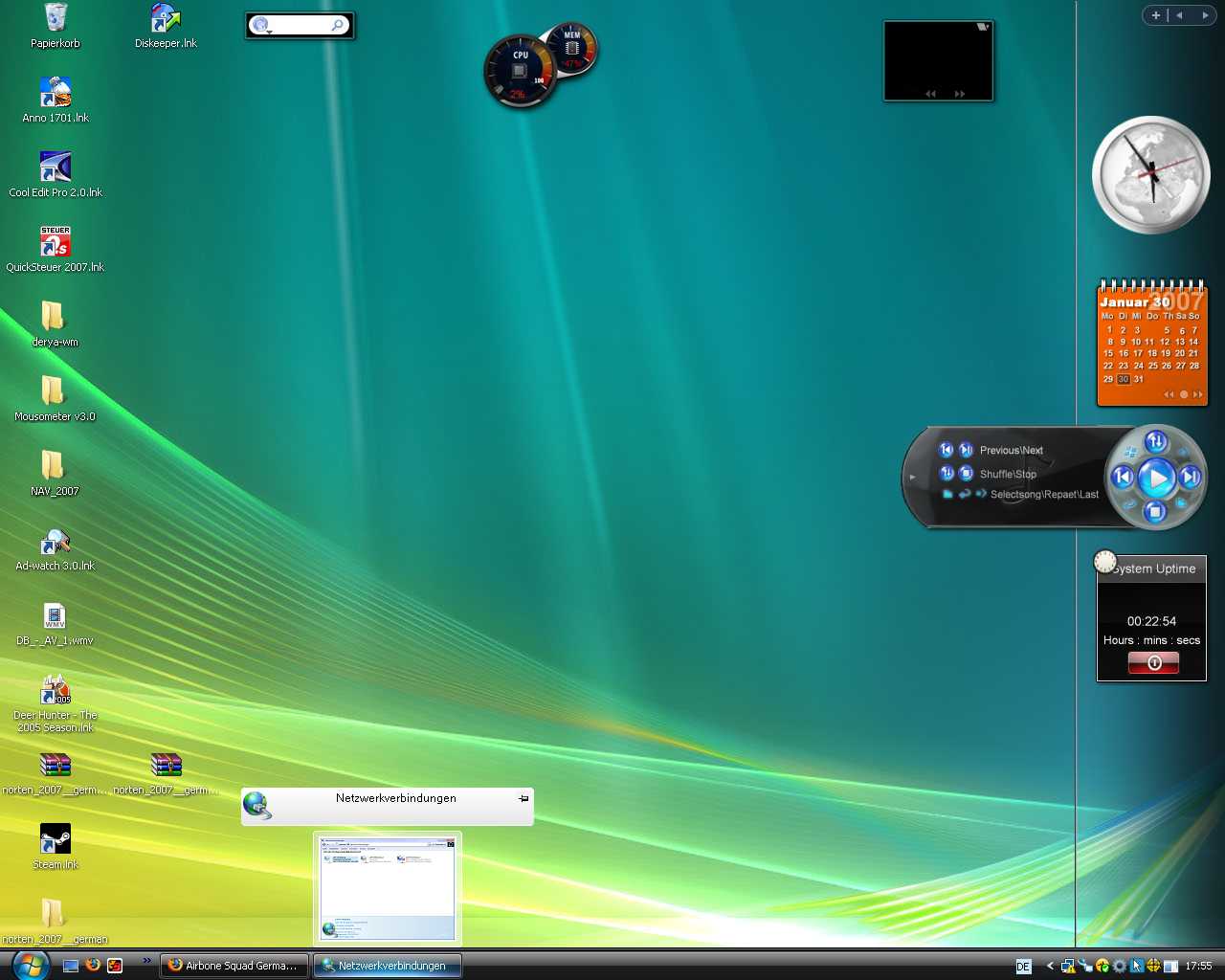 , und nun mal zu Vista, ich muß sagen es überzeug mich von Tag zu Tag mehr, nach anfänglichen Schwierigkeiten bin ich begeistert. Hatte nen bißchen Angst das meine Hardware mit Vista nicht´s taugt aber kein Grund zur Panik, gut das ich mal auf True gehört habe und es mir zugelegt habe, Hoch lebe Vista ich kann es nur wärmstens empfehlen, Bastelspaß vorprogramiert