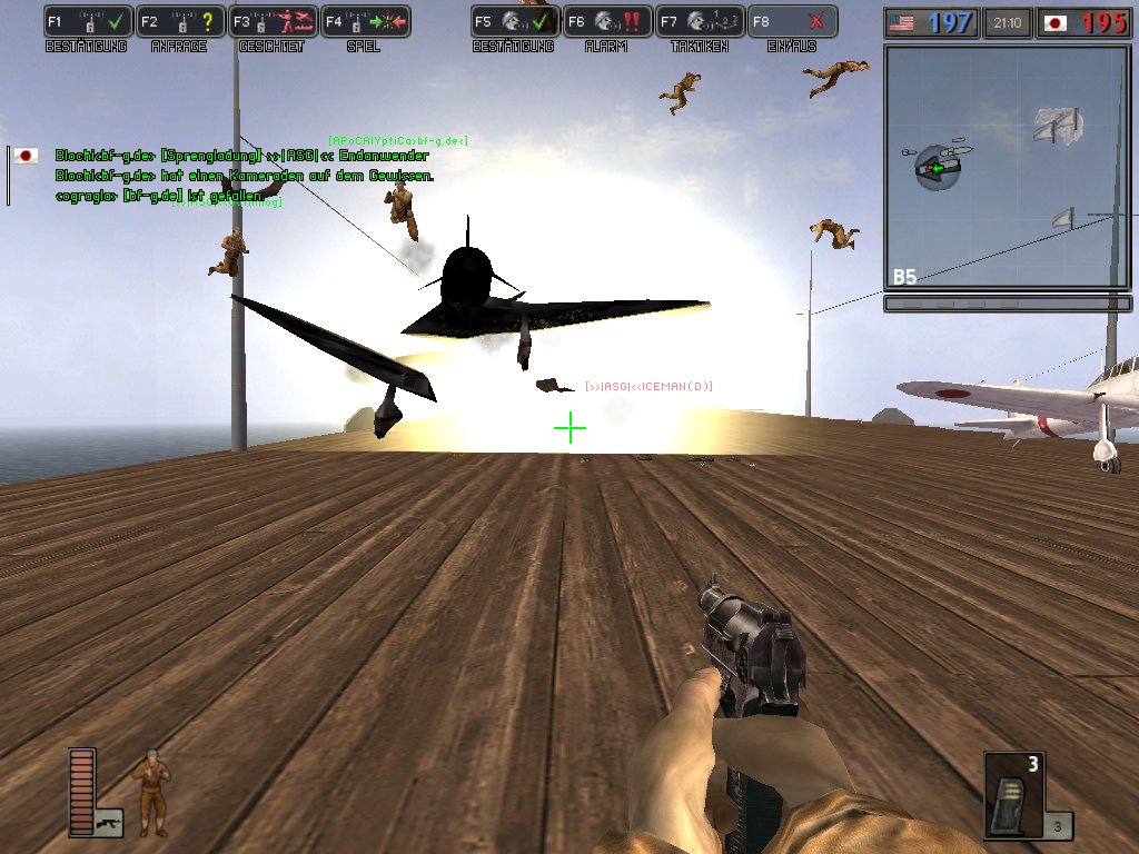 Hier weiss ich auch nicht - irgendwie isser danach auf das gegnerische Schiff gekommen. Viel genützt hat es ihm nix.